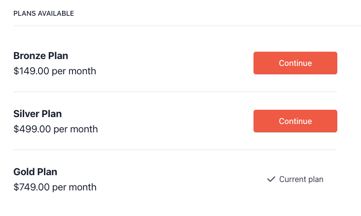 - In order to modify your subscription, select "Update Plan" > and hit "Continue" for the desired plan.